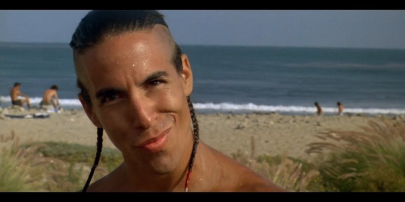 As Johnny Utah (spoiler alert) starts to suspect Bodhi of the robberies, he follows him around for a day. At some point here, it would have been nice to see at least a brief beatdown of Anthony Kiedis. Frankly, it would have added a compelling intrigue if Utah were to witness Bodhi beating Kiedis during his daily rounds and say to himself, “Maybe I was wrong, maybe Bodhi isn’t the bad guy, maybe he’s just a really solid dude.”