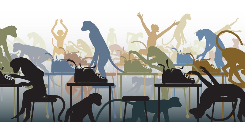 Would you believe these monkeys did not type word one? Nope, too busy killing, raping and eating each other like, immediately. Some of the savvier ones did find the priceless typewriters useful as bludgeoning tools. I had never before seen so much blood and viscera, and that was before the Ramada Inn staff came into the hall with the brunch buffet we forgot to cancel. Those monkeys were on those poor workers like Ramada Inn guests on a brunch buffet. The few that did survive were the ones unlucky enough to discover that the virus making those monkeys so aggressive could jump to humans.