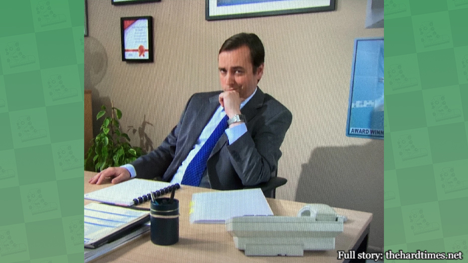 Representative at “publisher” British London, Greg is by no means a morally upstanding citizen. He takes Mark for a ride on publishing (or, rather, printing out) “Business Secrets of the Pharaohs,” although he ends up partially redeeming his reputation with Mark (though definitely not his character) by printing a fraudulent Life Coach certificate for Jeremy. Slimeball? Yes. Hooligan? Not so much.