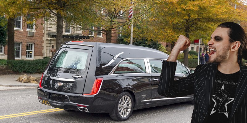“In all my years in the business, I still have no idea what to do whenever I see the vampire types make that horn-thing gesture,” Kulis explained. “I mean, do they want me to lay on my horn during the funeral procession? Flash the lights? Do it back? Normally I just look at them then pretend to look at the road or my phone while driving. I guess it’s better than them asking me for autographs like they did in the ‘90s.”