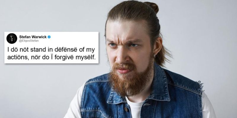 “I realize nöw the my desëcration of the Germanic umlaut is only the latest of my ever-growing list of terrible personal traits,” Warwick tweeted.