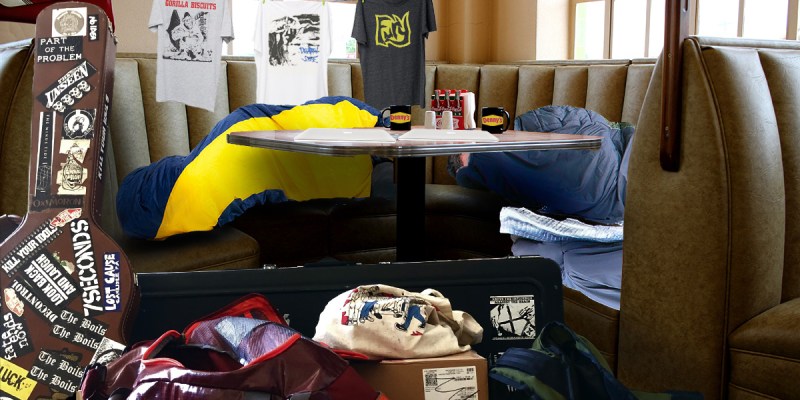 LOS ANGELES — Staff at the Melrose Avenue Denny’s location are beginning to openly question if the members of local punk band Governmatricide are using the corner booth they have occupied for the past 72 hours as permanent housing.
