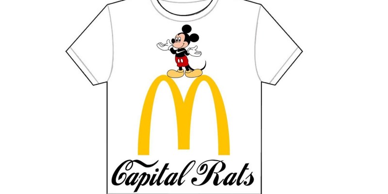 “At first I was afraid McDonald’s or Disney would come after me for doing this, but I don’t think those corporate bloodsuckers will ever find out,” said Castello when speaking about the various logos he knocked off for his band’s shirt designs.