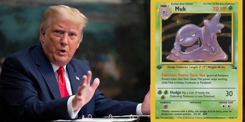 WASHINGTON — Following a string of other legal concessions in the waning days of his term, President Donald Trump announced this morning that he would be withdrawing a decades-old lawsuit against the Pokémon Company which had previously prohibited them from printing cards featuring the toxic sludge Pokémon, Muk, due to its blatant similarity to his likeness.