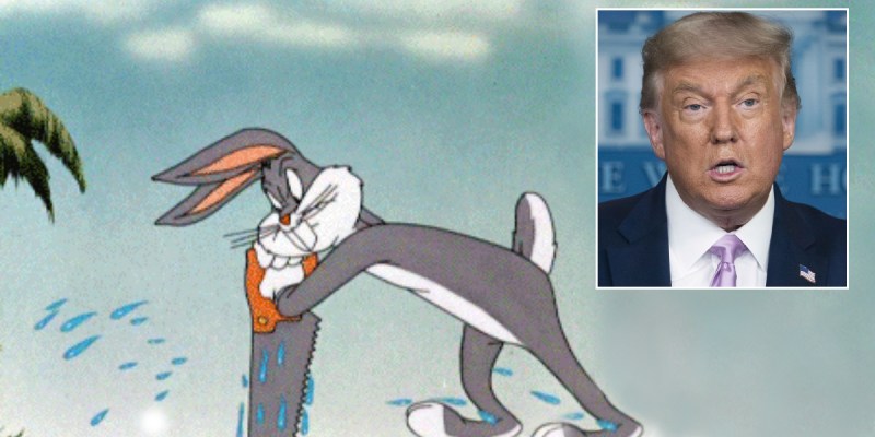 “There I was, minding my own business in the gardens of the White House, taking a bird bath — I mean, a wegular bath,” explained the whistleblower, who asked to remain anonymous. “Then I taw through an open window something very intwesting. At first I tawt I taw Tonald Trump speaking with Bugs Bunny. Then I looked again and I did! I did taw Tonald Trump speaking with Bugs Bunny!”
