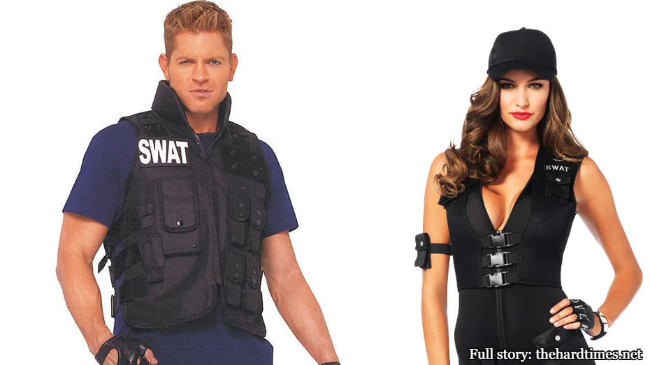 It’s almost time for Whore-o-ween, and apparently you are considering dressing as a sexy law enforcement officer. We think that’s a great idea: after all, what could be sexier than America’s police force, a benevolent and uncontested system that we’re pretty sure has not been in the news at all in the past 3 years. What’s that? We are being told to check our Twitter feed, which hasn’t been refreshed since the Obama inauguration. Uh-oh—we have to say, this is not looking good. Like, really not good. Well, we already started this list, so here are some sexy cop outfits that say, “take a look at my hot ass,” and, a few seconds later, “this is the first I’m hearing of all that.”