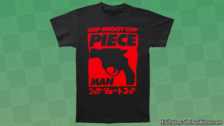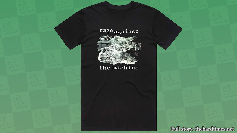 If you get spotted wearing this shirt by a divorced, middle-aged, beer-swilling TSA officer, you may get flagged as a “cool guy who likes good music”, getting you an invite to a private Telegram group where they discuss the band and also goon-out to insurrection fantasies.
