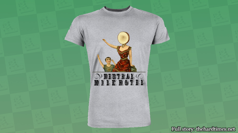 You just wanted to rep your indie cred with an NMH shirt. However, the figure giving a vaguely Nazi-esque salute might cause some concern to a TSA officer. Prepare to be grilled with questions like, “What’s going to happen to the aeroplane over the sea? What do you know?”