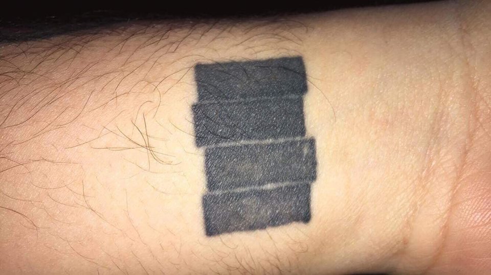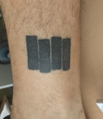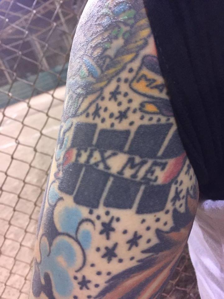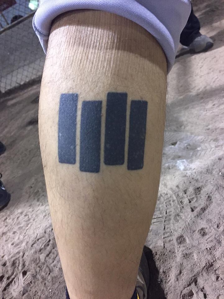 This one is cover up of three separate Black Flag tattoos that I thought were all too small. I don’t mind this one as much but I wish I had GONE BIGGER. There’s just so much more leg space available. Out of embarrassment I have to wear knee socks so my buddies don’t make fun of me for the size. I should’ve had it wrap around to my shin: infinite Black Flag.
