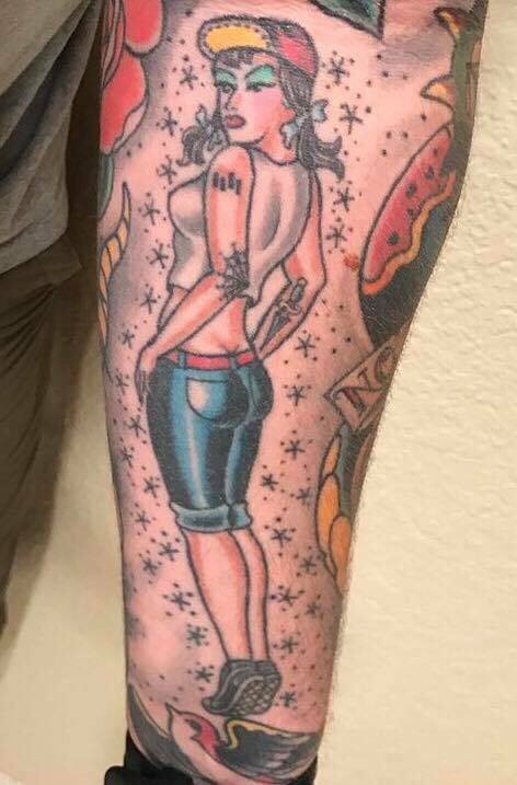 This is a portrait of my ex and also the reason she gave for breaking up with me. We had been fighting for a few weeks and I thought getting this tattoo of her would help calm the waters after she caught me sleeping with her best friend. Man, was I wrong. The worst part is her now husband has the exact same tattoo. They have two kids.