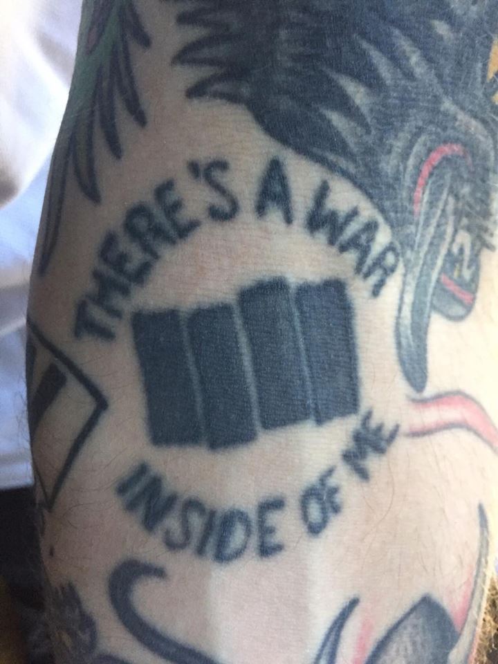 Never go to a tattoo artist who knows more Tegan and Sara songs than Black Flag songs. If you do, you’ll end up with lyrics from, “You Wouldn’t Like Me” instead of, “My War”. I should’ve had him stop immediately after I noticed it wasn’t right but that dude was straight up terrifying: he had so many tattoos I’m sure he regretted. I guess technically this one also counts as one of eight Tegan and Sara tattoos I regret too.