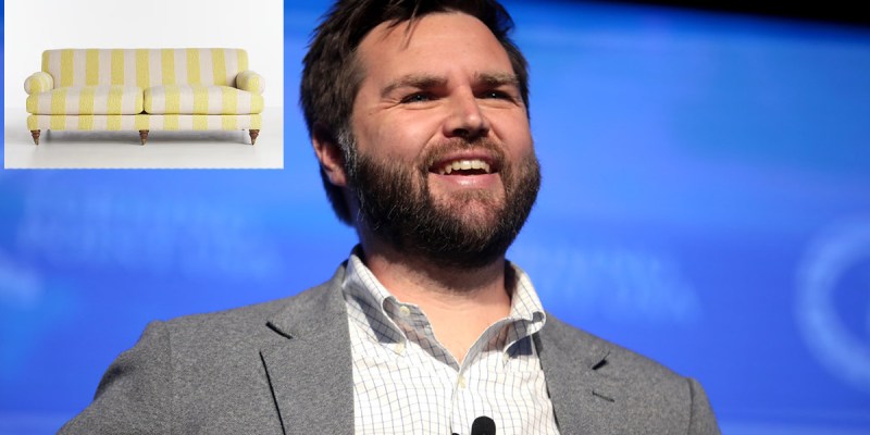 Hello, my name is J.D. Vance, and I am running for Vice President of these United States, but that’s not what I’m here to talk about today. Today, I want to talk to you about couches. Can I say that word? Couches? Is that offensive now? Has that been cancelled yet? I bet it has. Good grief. Anyway, I’m here to talk to you about couches. Wait, I already said that. HAHAHAHAHA! I love you guys. Anyway, I’m here to talk about couches.