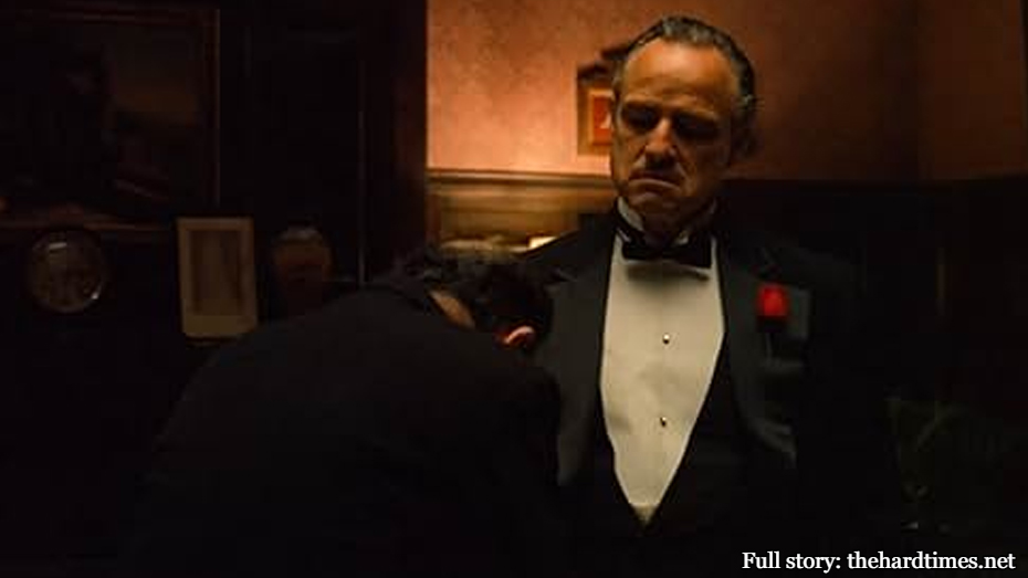 When Michael Corleone assassinates Sollozzo Capt. McCluskey, it’s not only a pivotal plot point, but it marks his personal point of no return. No longer is Michael the golden boy, the clean-cut soldier immune to the ugliness of his family business. In his vengeance, he has taken his first step toward a dark path that will end in him becoming a more ruthless crime boss than his own father. This dark foreshadowing is expertly punctuated when Michael leaves the restaurant, and the camera pans over to Deadpool at a nearby table wearing a napkin bib covered in spaghetti sauce saying “Uh… check please!”