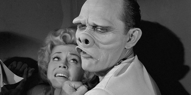 In a world where everyone is a pig-faced ghoul, a conventionally attractive woman is considered deformed, and after her 11th attempt at corrective surgery she is still “ugly.” Hang on… 11 surgeries? So even in this fictional world run by literal fascist pigs, insurance will cover 11 surgeries to fix a purely cosmetic issue? Which world is the dystopia again?