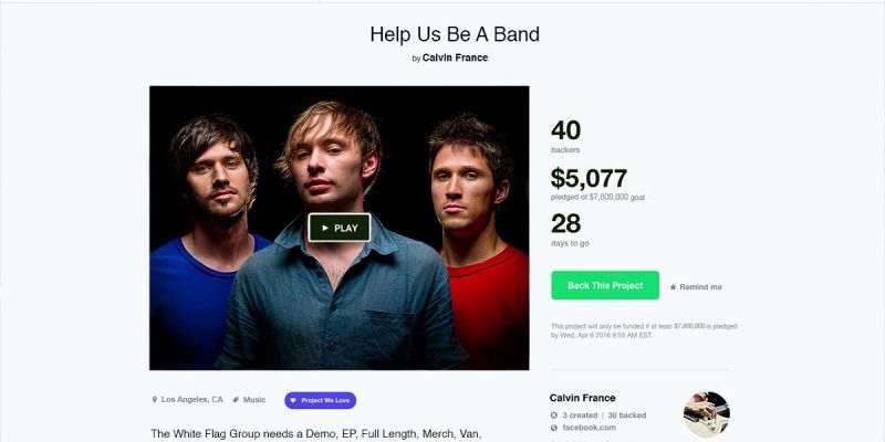 LOS ANGELES – Los Angeles indie band The White Flag Group have launched a Kickstarter campaign to fund their demo, EP, band merchandise, full length album, van, second full length album, drug habit, third full length album, addiction recovery, and reunion tour following their first official band practice last week.