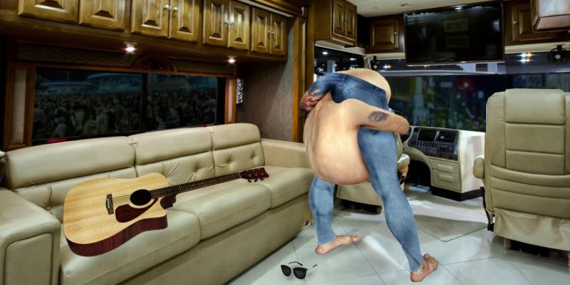 “It was a nightmare. He was rambling on about how his fans are supporting commercialized pop music when his upper body wretched forward, went down between his legs, and his forehead slowly started entering his own anus,” said tour bus driver Hutch Erikson. “As soon as his entire head got in there, I’d seen enough. I got off the bus and threw up outside.”