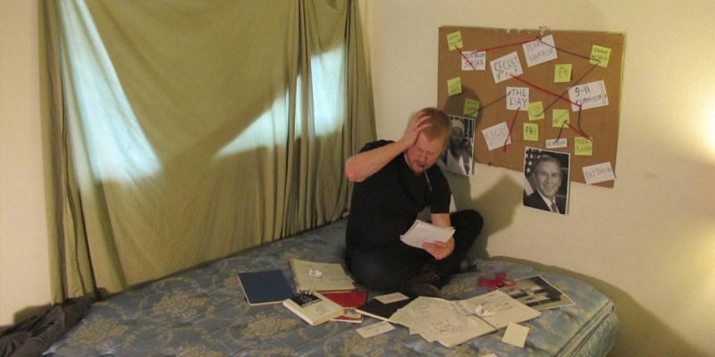 “Yeah, so, this will be, like, the singalong part,” Lowry said. “This is what I have so far… ‘Rumsfeld. Loose Change. CIA. Nano Thermite. Citigroup. Global hegemony. NORAD. al-Saud. Patriot Act. Israel. Blackboxes. Controlled demolition. Pentagon missile. LIHOP. MIHOP. MAGA. Reptilian shape-shifting aliens.’ It’s getting there, but I still don’t have anything about bin Laden’s ties to Reagan in the Cold War.”