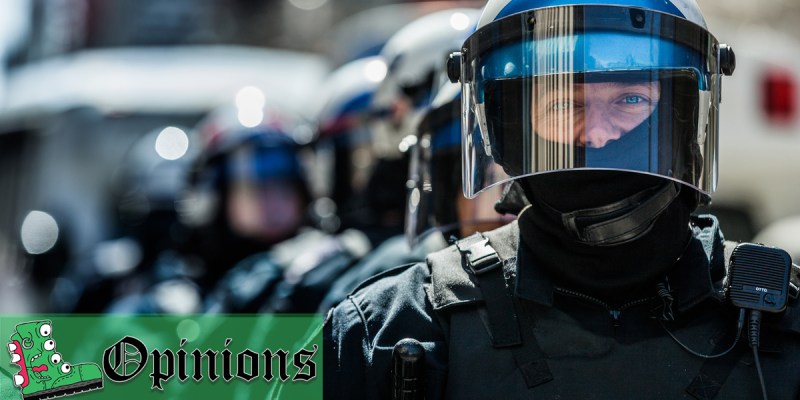 So next time you’re standing in front of a wall of riot cops decked out with more packets than a Rob Liefeld character, just know that behind each face shield and below the helmet, and then above the gas mask, there’s a pair of eyes shielding a hellscape the likes of which you’ve never known.