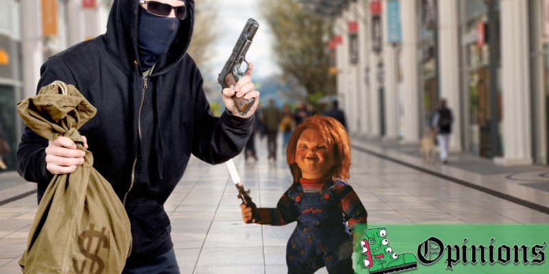 Even a staunch 2A supporter like me understands the fact that some people just shouldn’t have guns. Let’s face it, you’ve got a few nutjobs out there who would be an obvious danger to themselves and others if they had a gun. But when that happens, your only hope of diffusing the situation is for Chucky to come sprinting silently behind him like a little PVC assassin before administering some whoop-ass, batteries not included.
