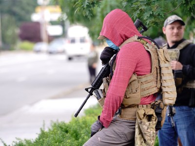 PEORIA, Ill. — A masked member of a local militia who was harassing people waiting in line to vote embarrassingly…