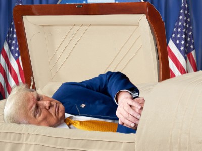 “Could a Dead Man Do THIS?!” Asks Trump Before Lying Down in Coffin Forever