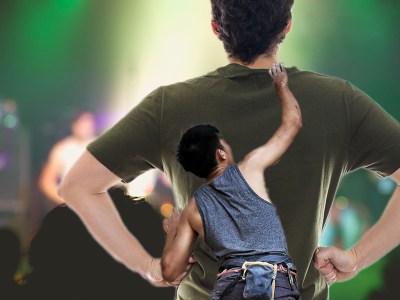 Punk Attempting to Free Climb 6’4” Man Blocking His View of Stage